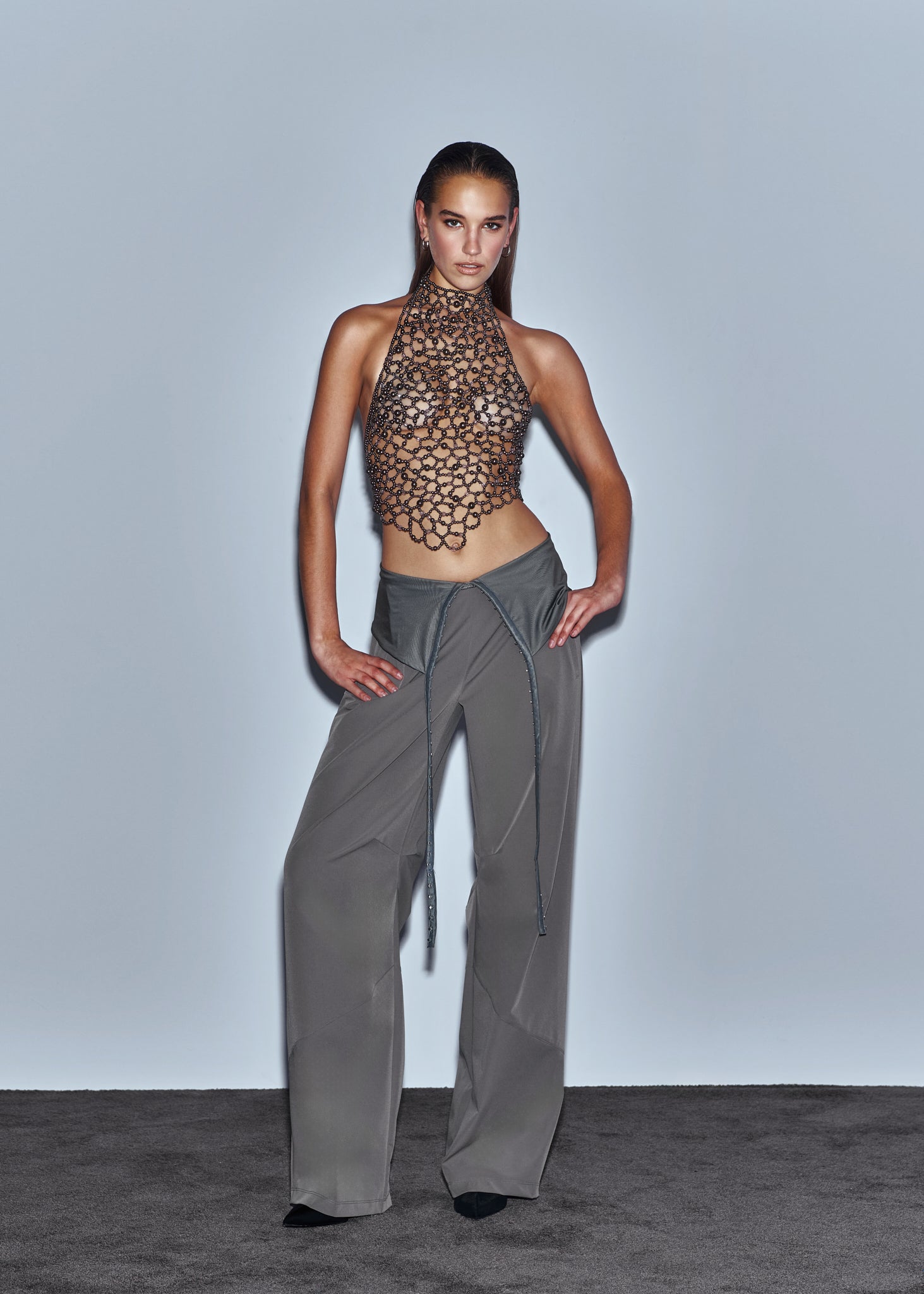 Bu bluz astarsız olup, boncuk işçiliğinin ayrıntılarının öne çıkmasını ve cesur bir duruş sergilemesini sağlar. Boncuk desenlerinin zarifliği, bu tasarım tercihiyle pekiştirilmiş olup, bluzu farklı görünümler için çeşitli iç giyimle kombinlenebilecek çok yönlü bir parça haline getirir. Ayarlanabilir kapanma detayı, kolayca özelleştirilebilir. Bu özellik, farklı vücut tiplerine mükemmel uyum sağlamak için hem konfor hem de esneklik sunar.