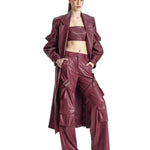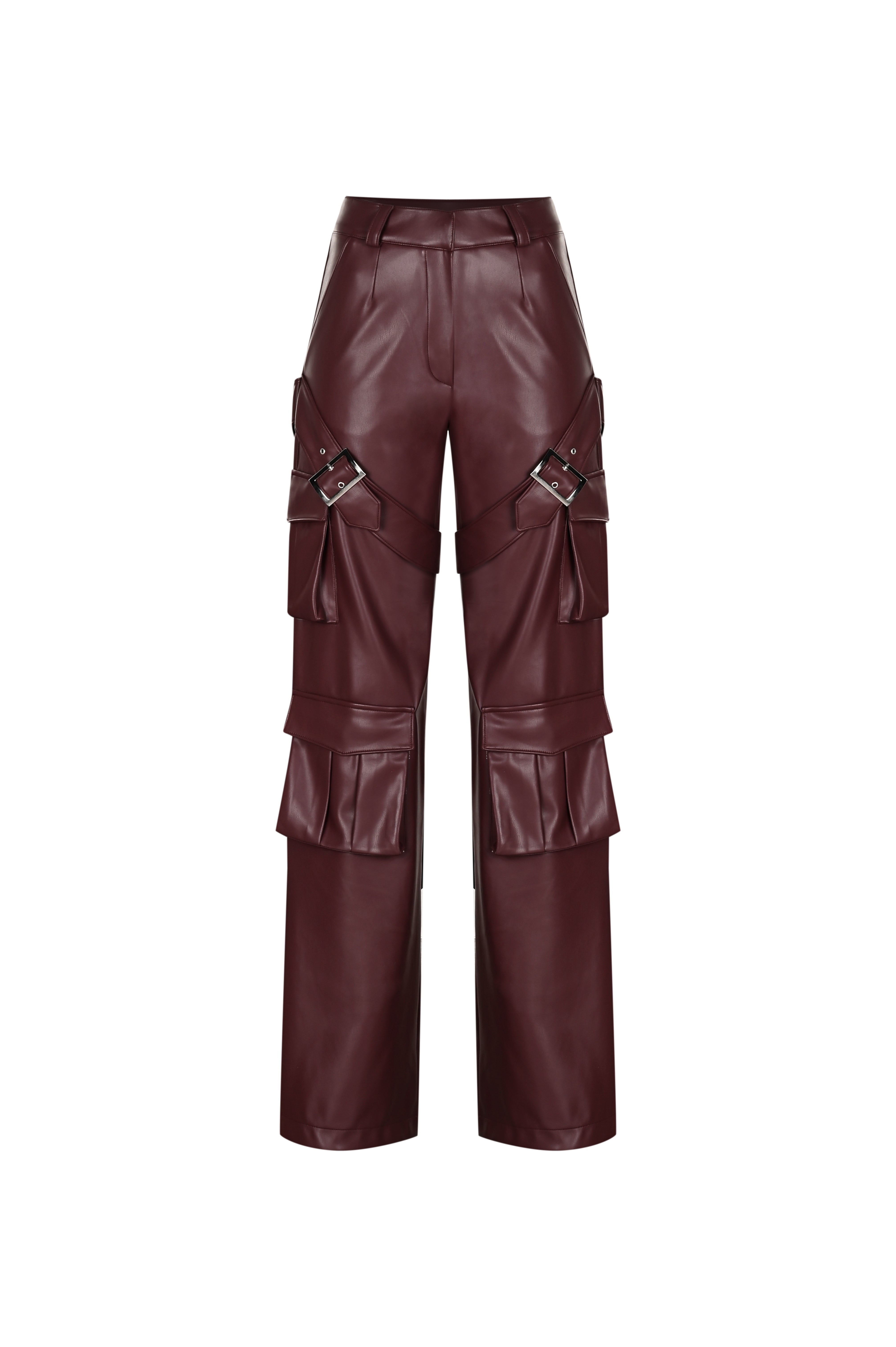 Yüksek kaliteli bordo suni deri kullanılarak üretilmiştir.