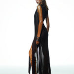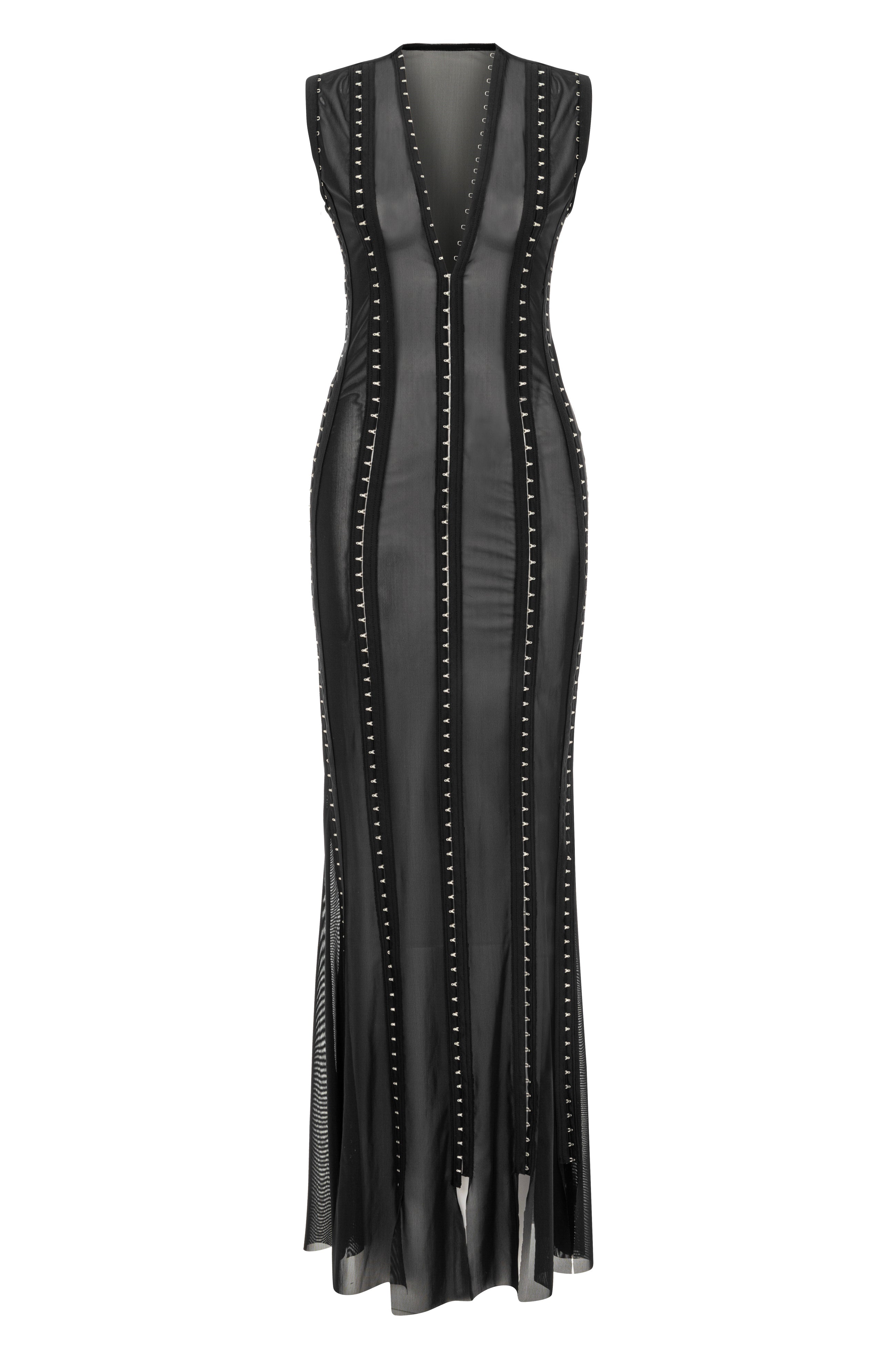 Crafted from high-quality and high-stretch mesh material, this dress features a sheer finish that adds a touch of sensuality to your look. The long length of the dress creates a dramatic effect, making it perfect for special occasions and events.