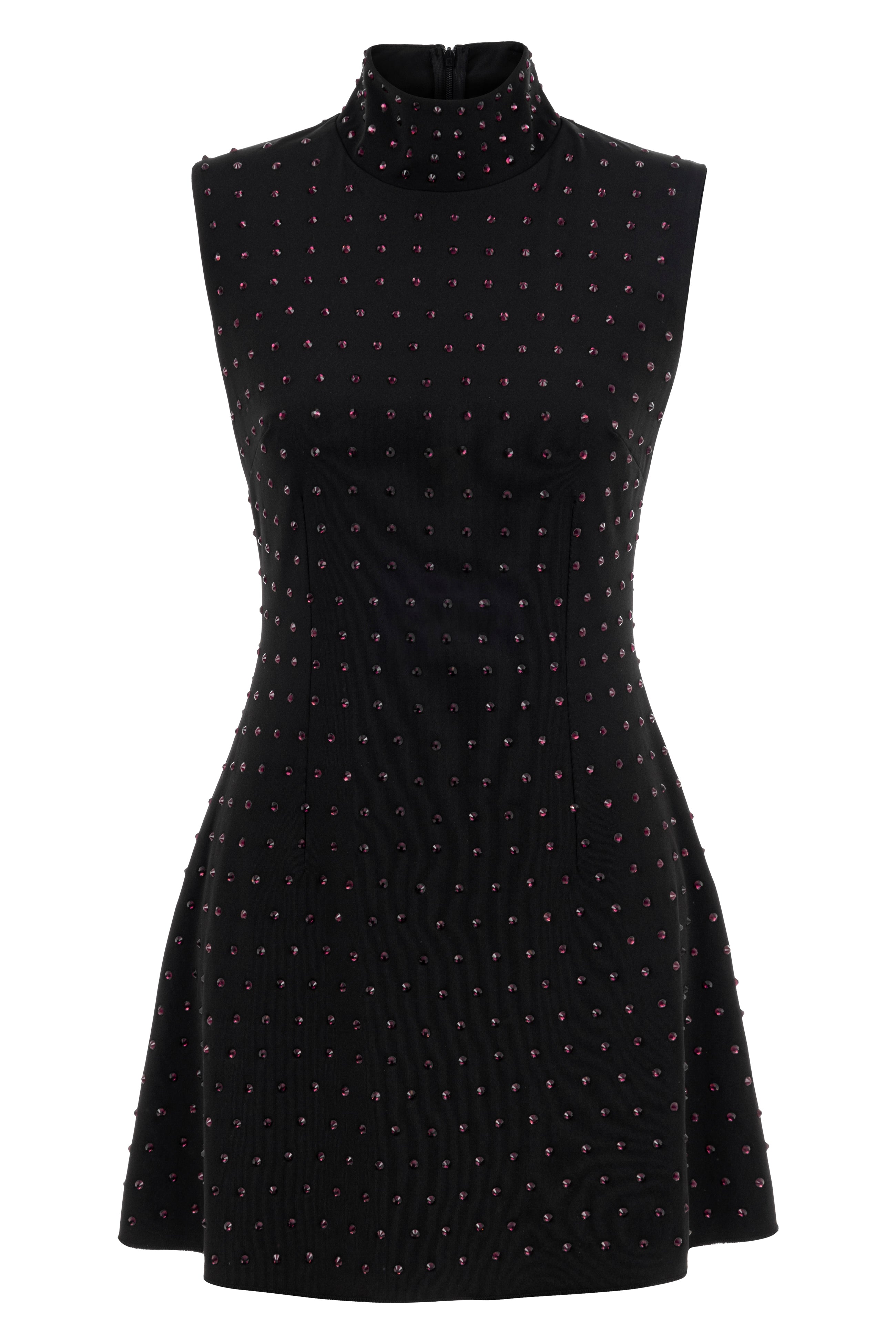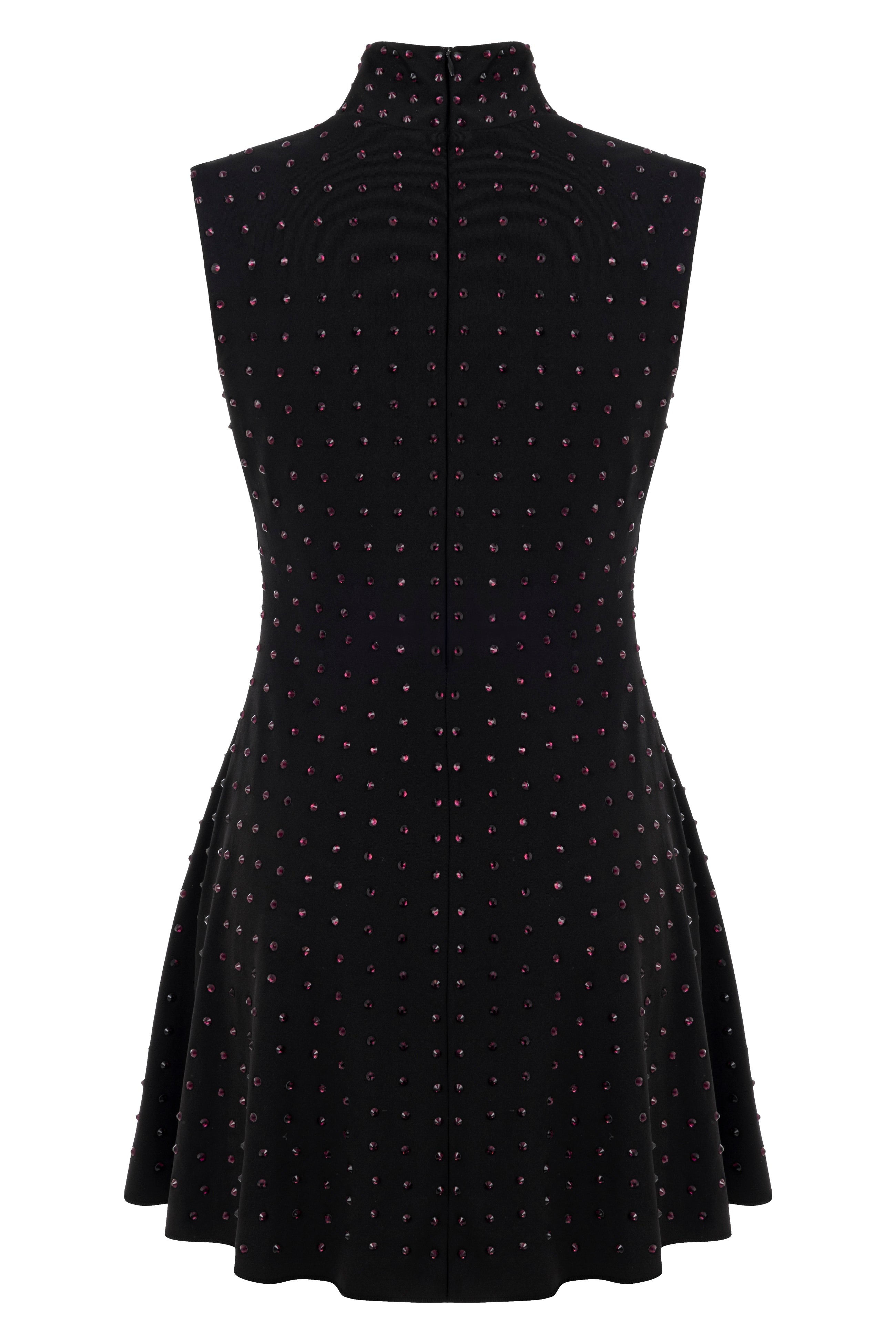 Featuring with shiny stones throughout that add an extra pop of color to any style. There is also a hidden zipper detail behind it. The gorgeous black turtleneck dress has a flattering silhouette. This versatile piece can be worn for chic or play—it's perfect for an office party or a night out on the town.
