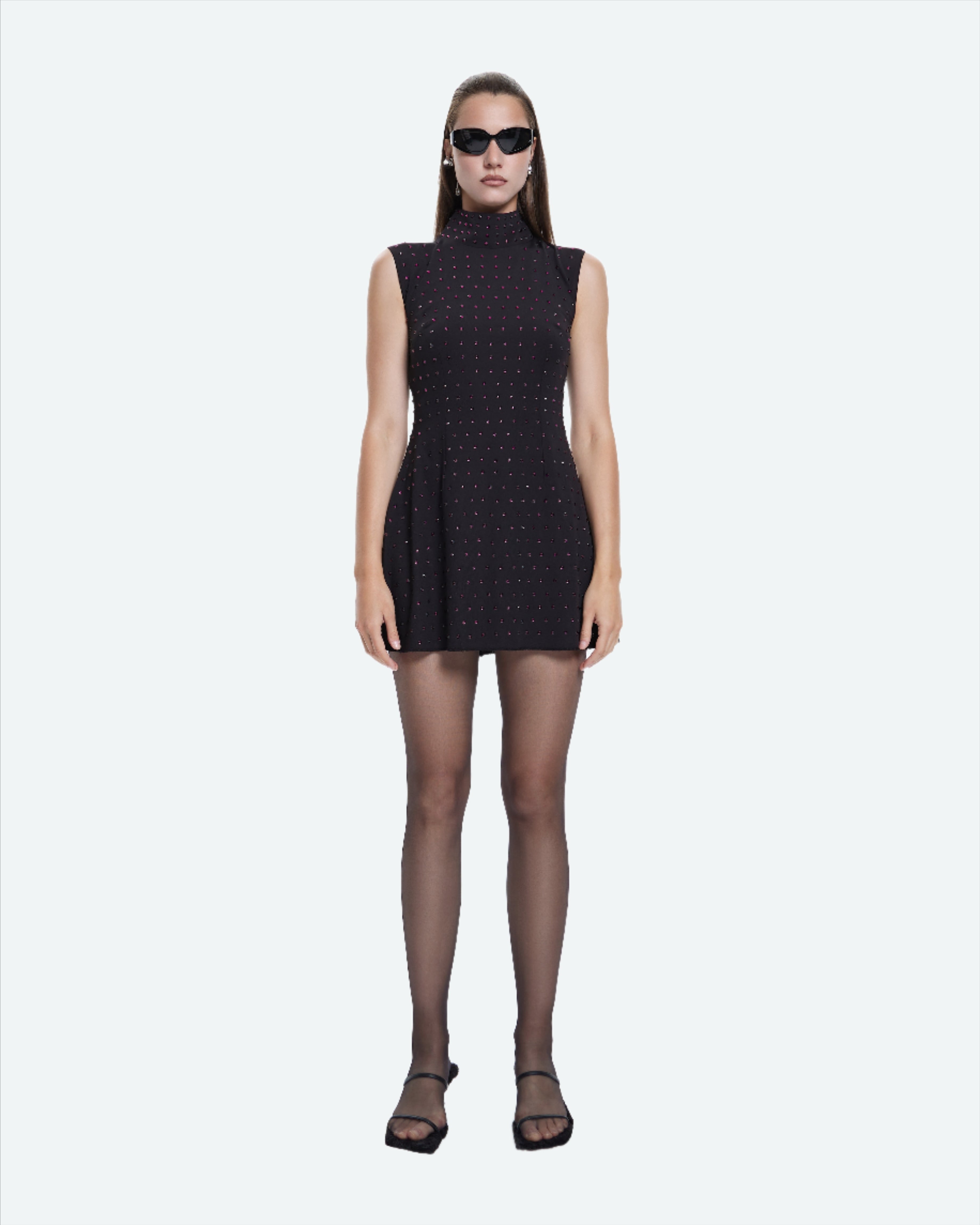 Jocelyn Dress is the perfect way to keep your look chic, sophisticated, and comfortable. This turtleneck, sleeveless mini dress is the perfect combination of style and comfort.