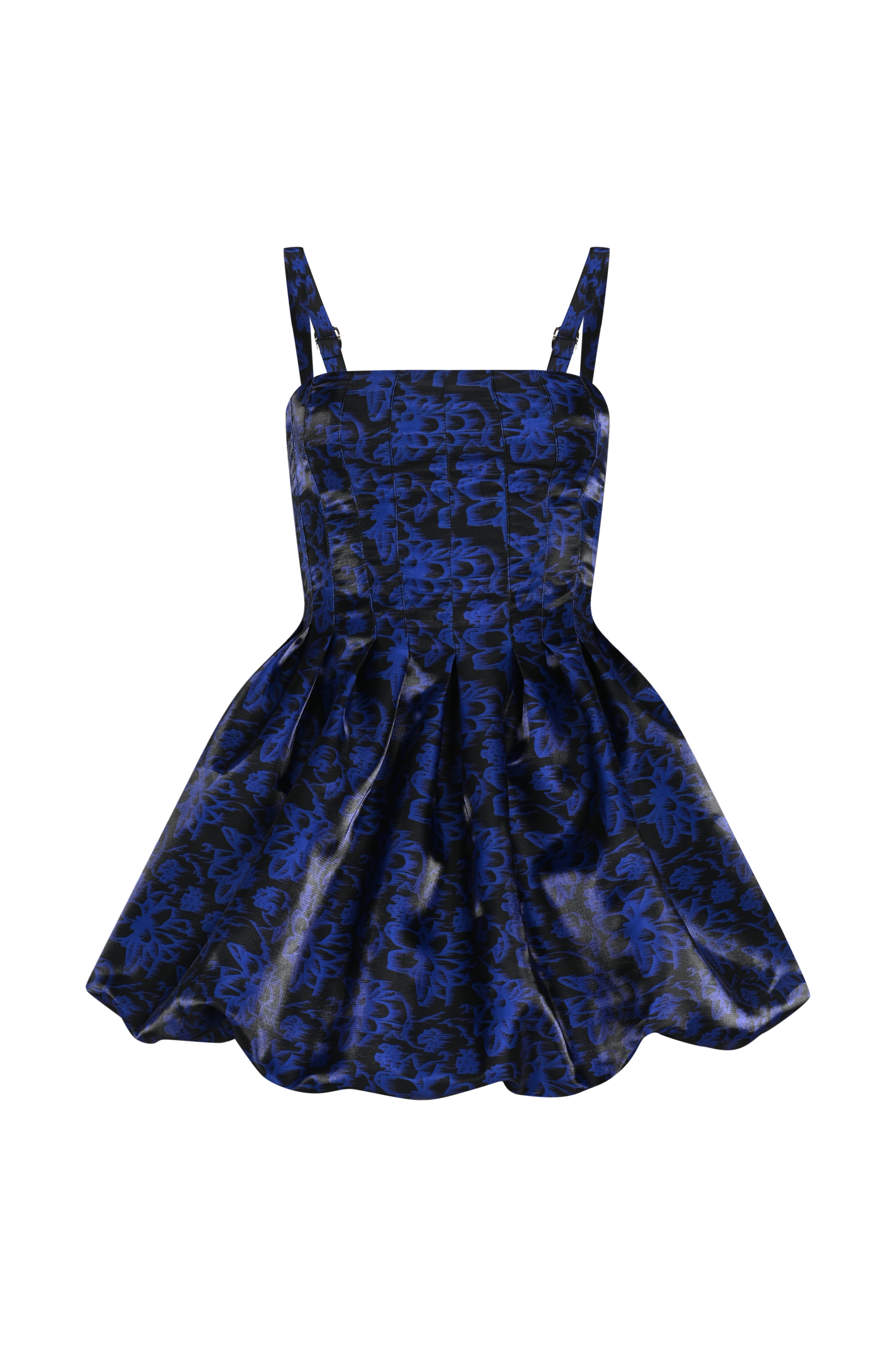 Made from shimmering, reflective fabric, our balloon dress features a corset-like bodice.