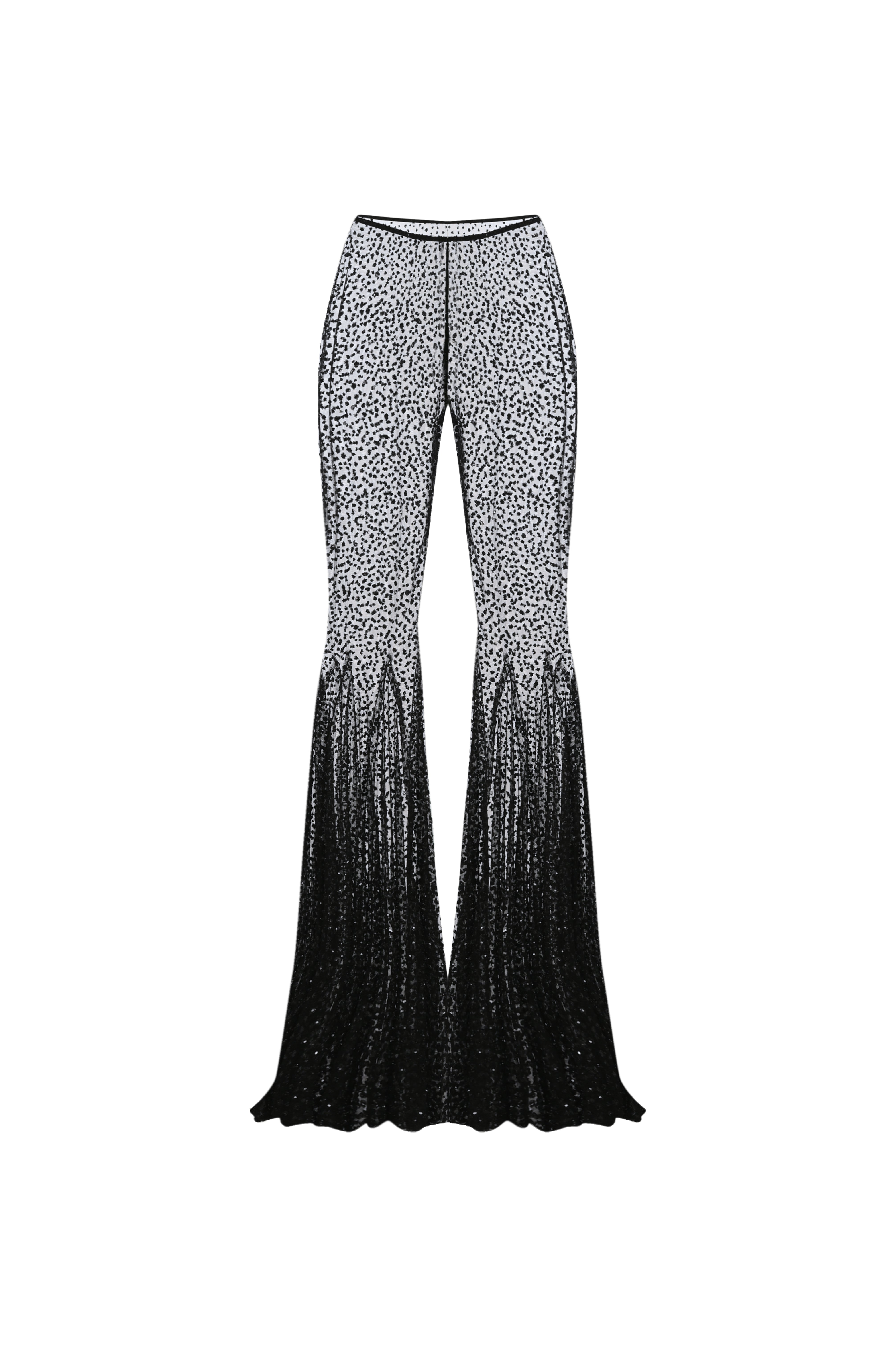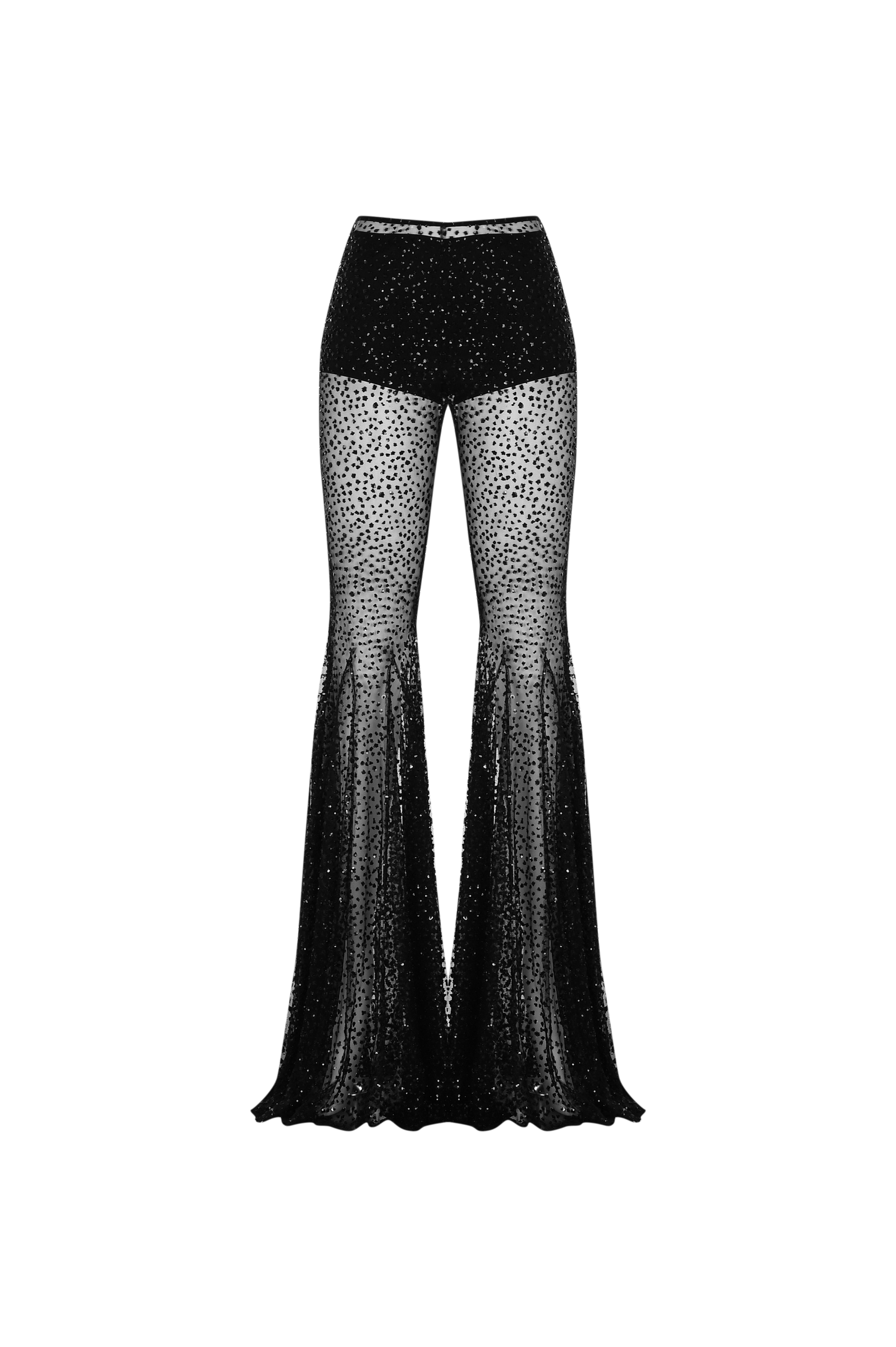 Siyah ispanyol paça biye kemerli transparan pantolon