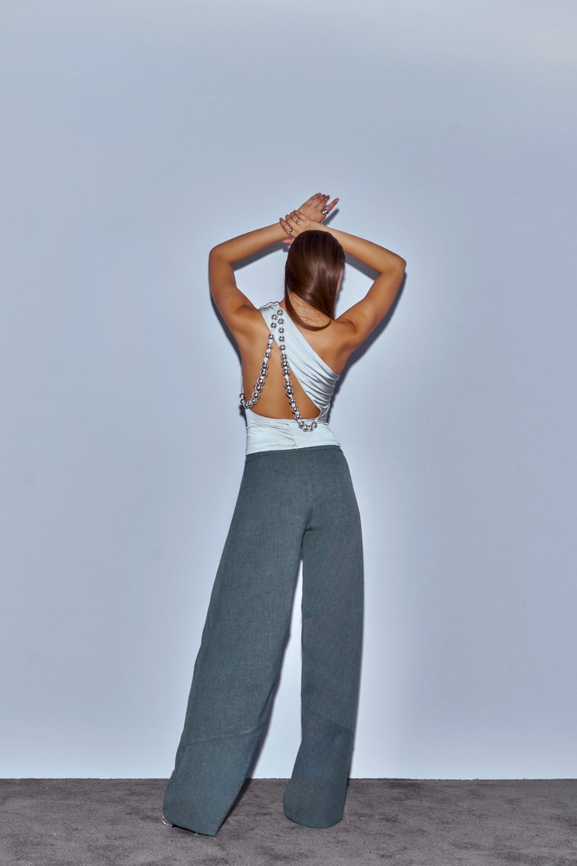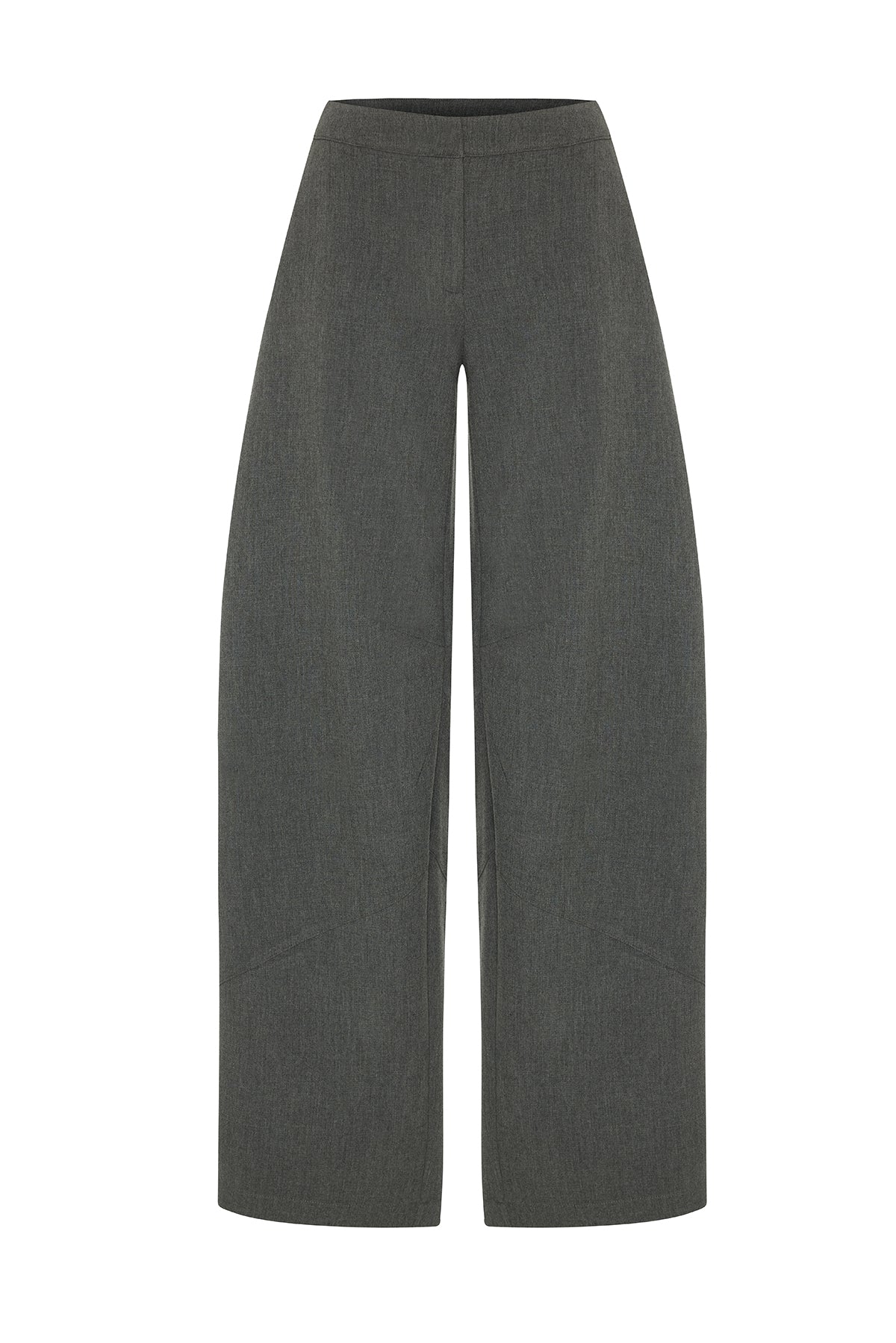 These barrel-leg pants are cut from a soft, wool like fabric that feels like comfort but looks like polish. Tailored with a structured mid waist and a rounded barrel silhouette, they balance sharp lines with an easy drape that keeps you warm without the bulk. Minimal, modern, and effortlessly elevated they're your winter uniform with a rebellious Khela twist.