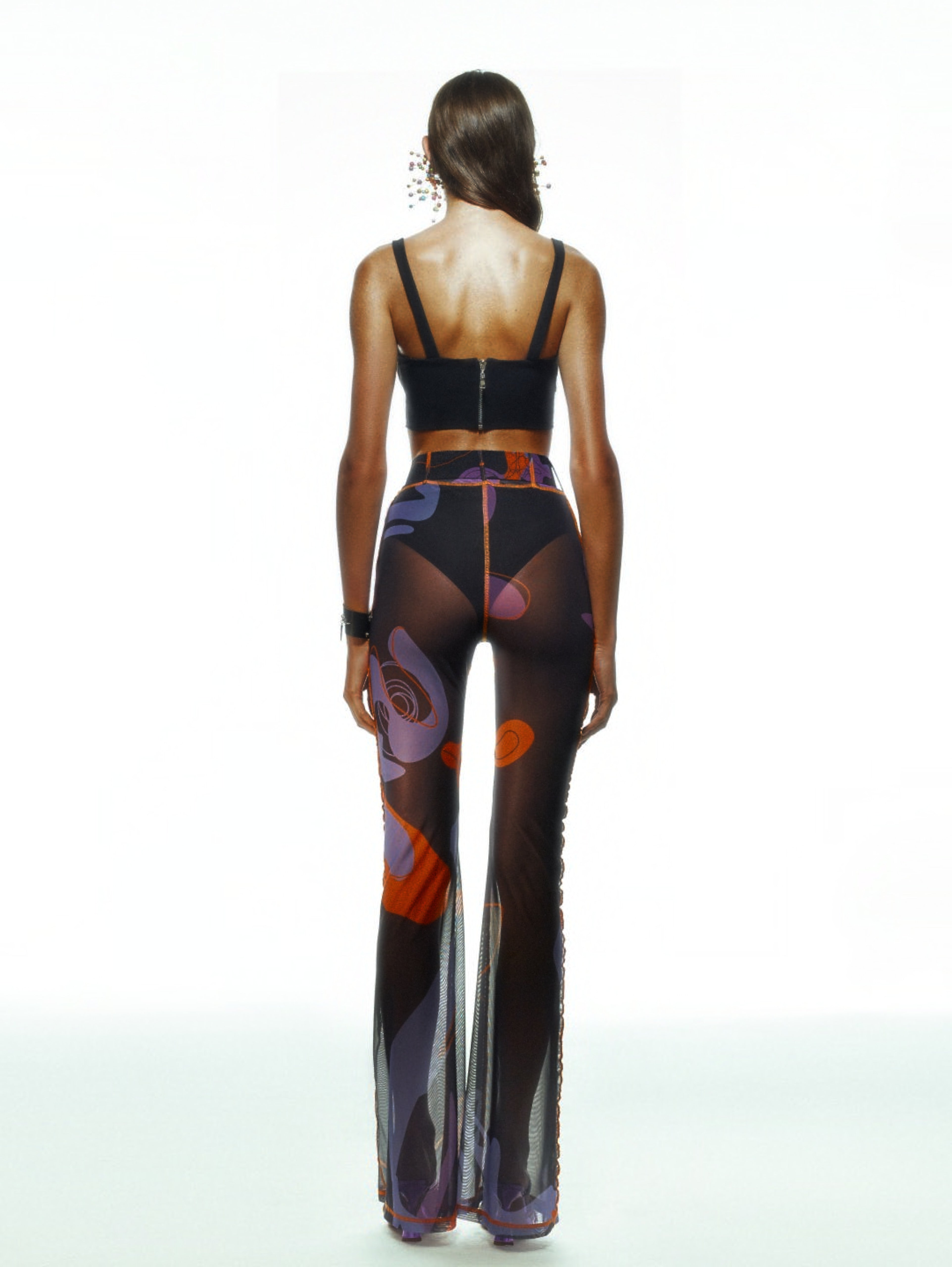 TAINTED FLOWER MESH PANTS IN BLACK