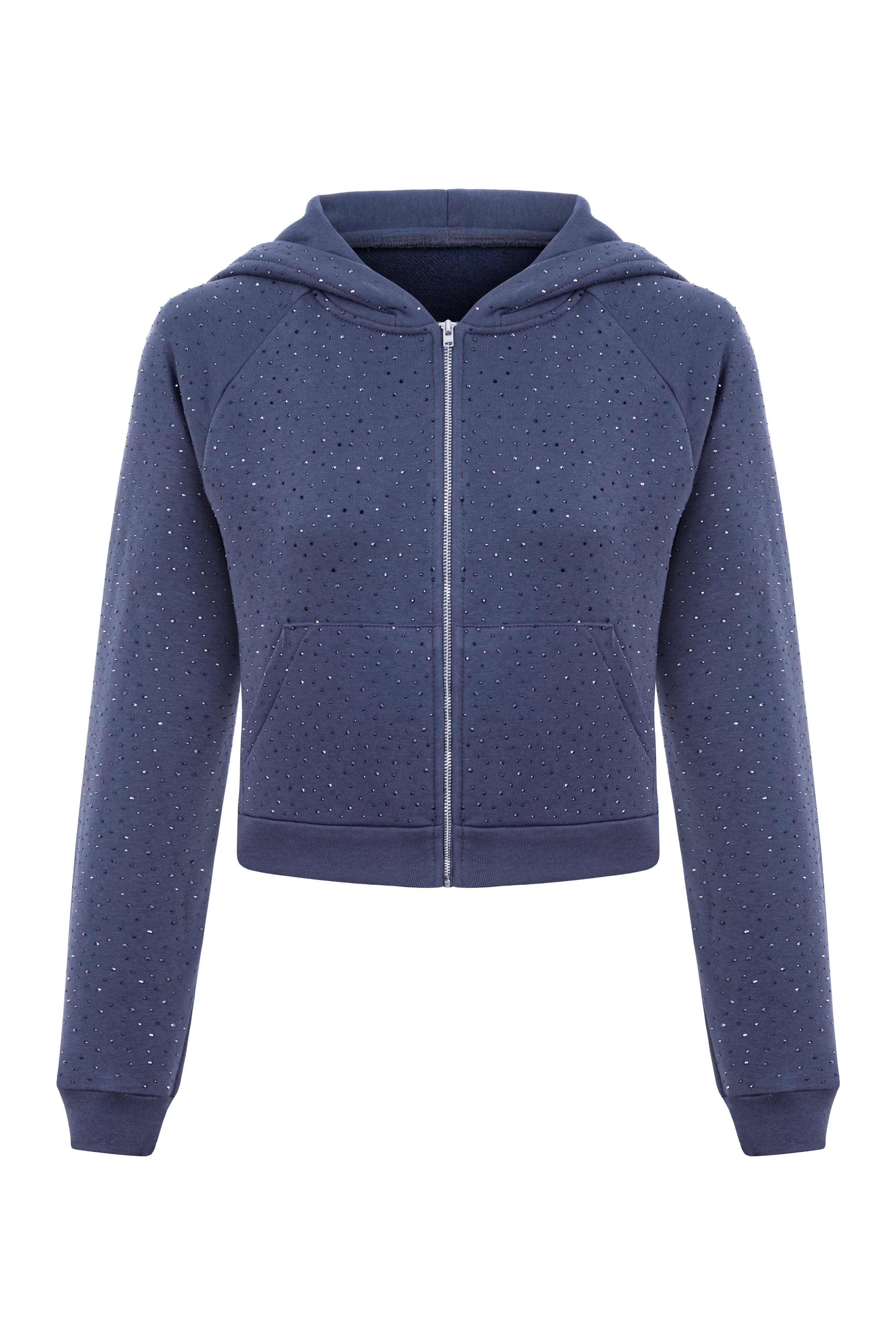 Introducing our stylish Stellar Zip Hoodie, cropped for a modern look and embellished with shimmering stones. This hoodie cardigan features convenient pockets and adds a touch of sparkle to your ensemble, making it a standout choice for any occasion.