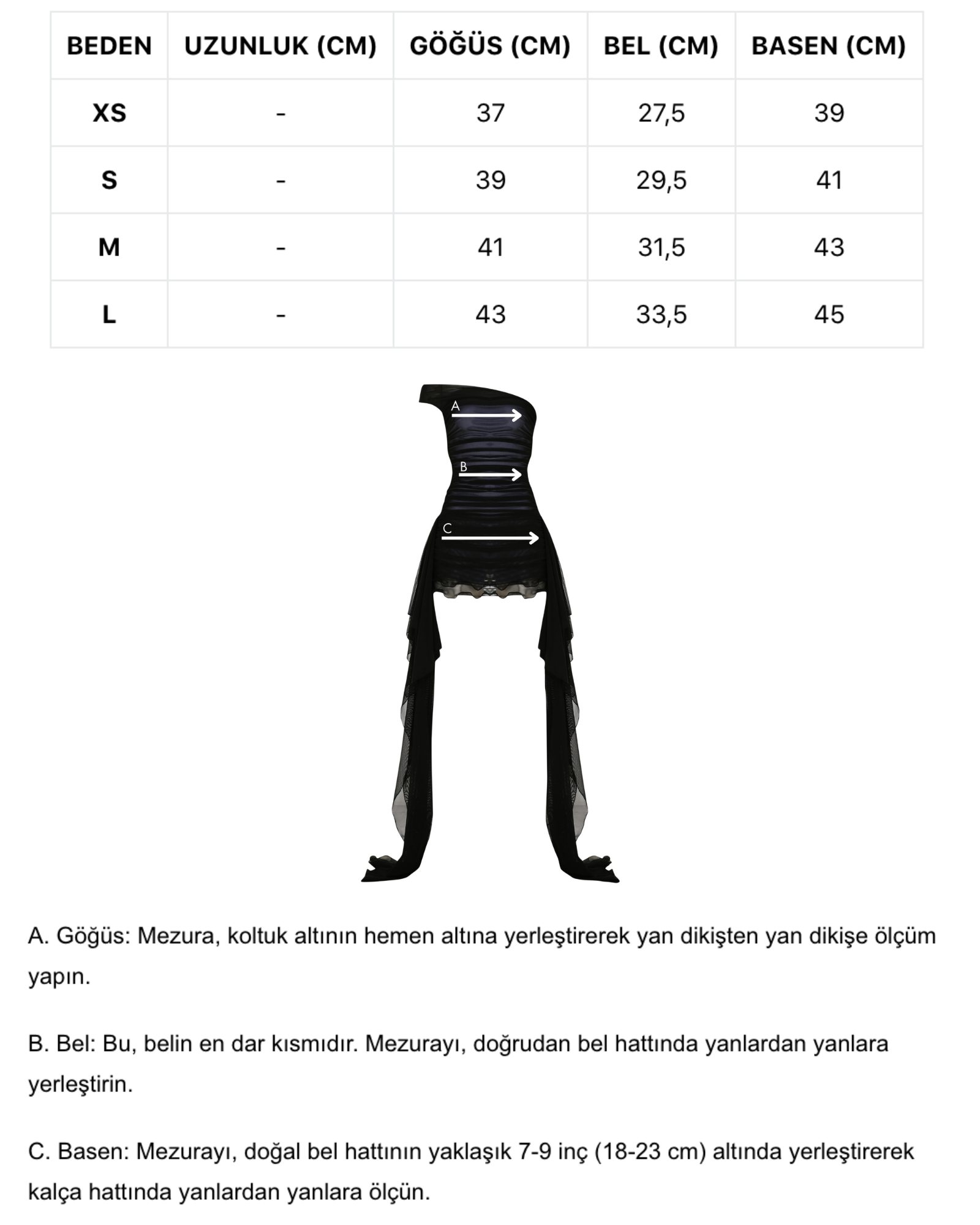 Model Measurements: Height: 180 cm, Bust: 83 cm, Waist: 62 cm, Hips: 91 cm