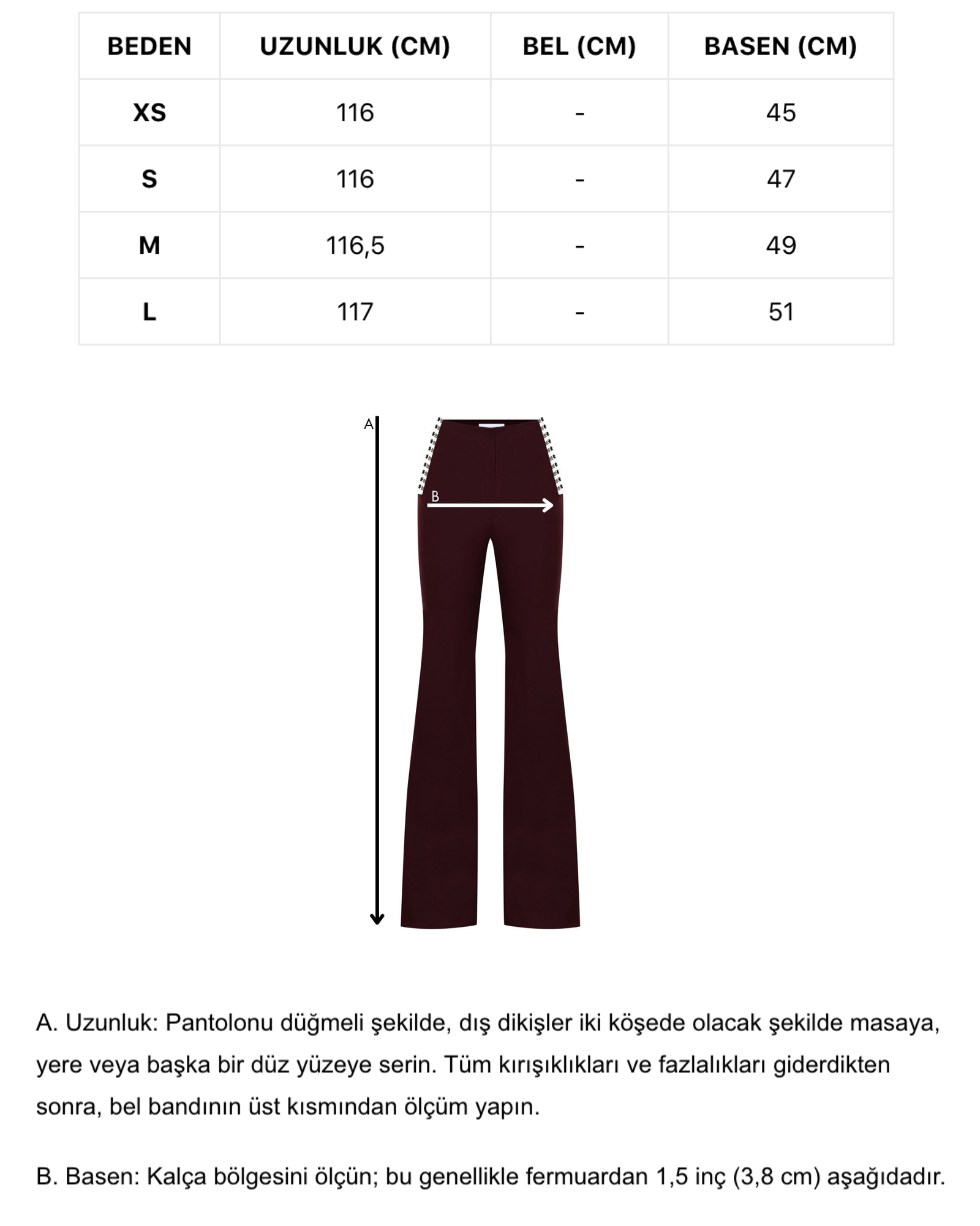 Bordo flare kalıp kemer ve pencere detaylı pantolon