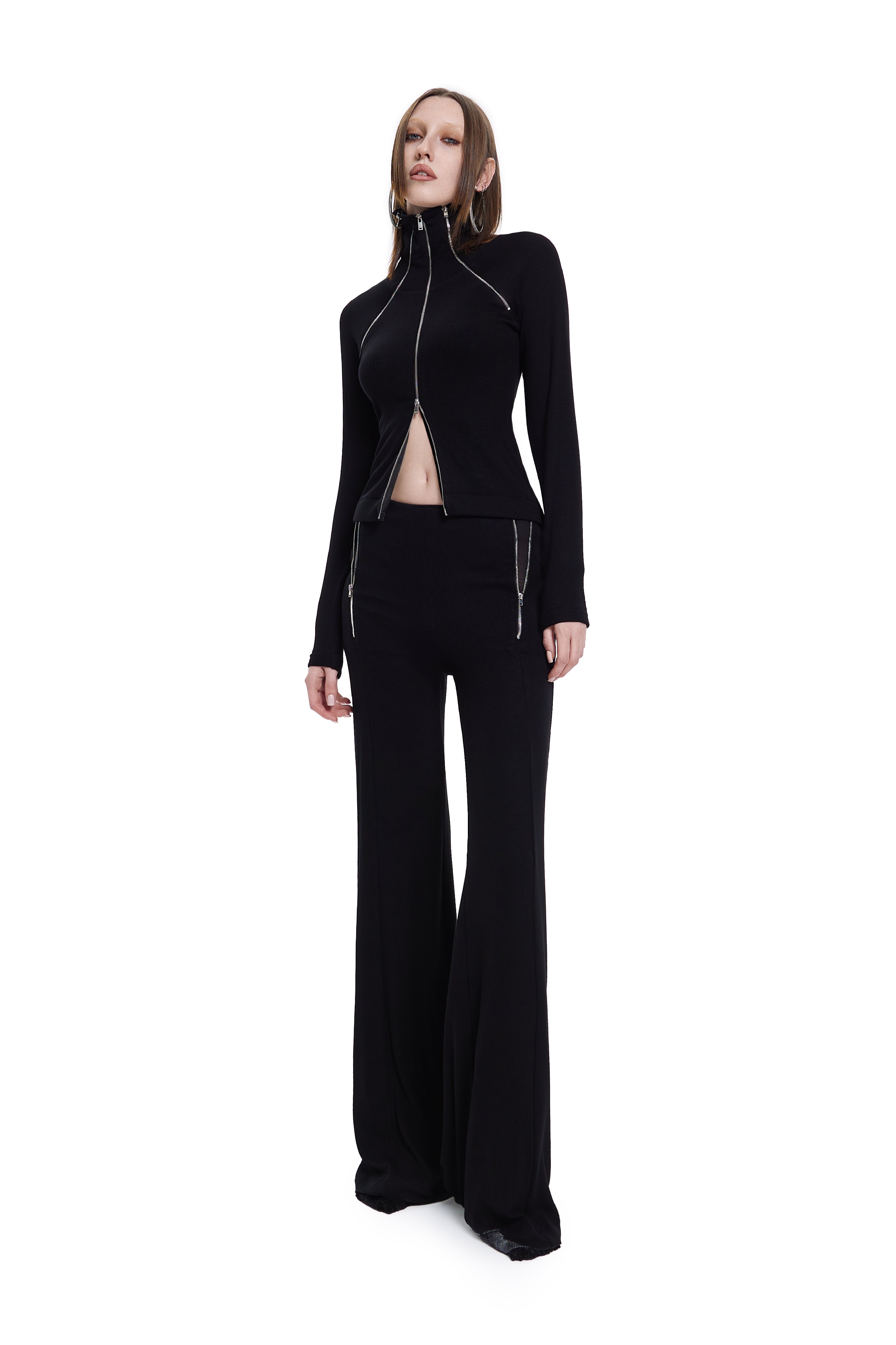 Introducing Transient Top in Black chic long-sleeved blouse with an asymmetrical turtleneck that's designed to turn heads. The unique neckline adds an edgy twist to your look, while the zipper detail extending from underarm and throughout adds an element of intrigue and versatility.