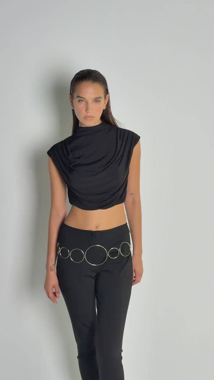 Our Boy Bye jersey top reinvents minimalism with attitude. A high neckline, cap sleeve cut, and sculpted draping that frames the body in all the right places. Cropped just above the waist, it’s sleek enough to style under tailoring and bold enough to stand on its own. Effortless stretch jersey makes it as comfortable as it is striking.